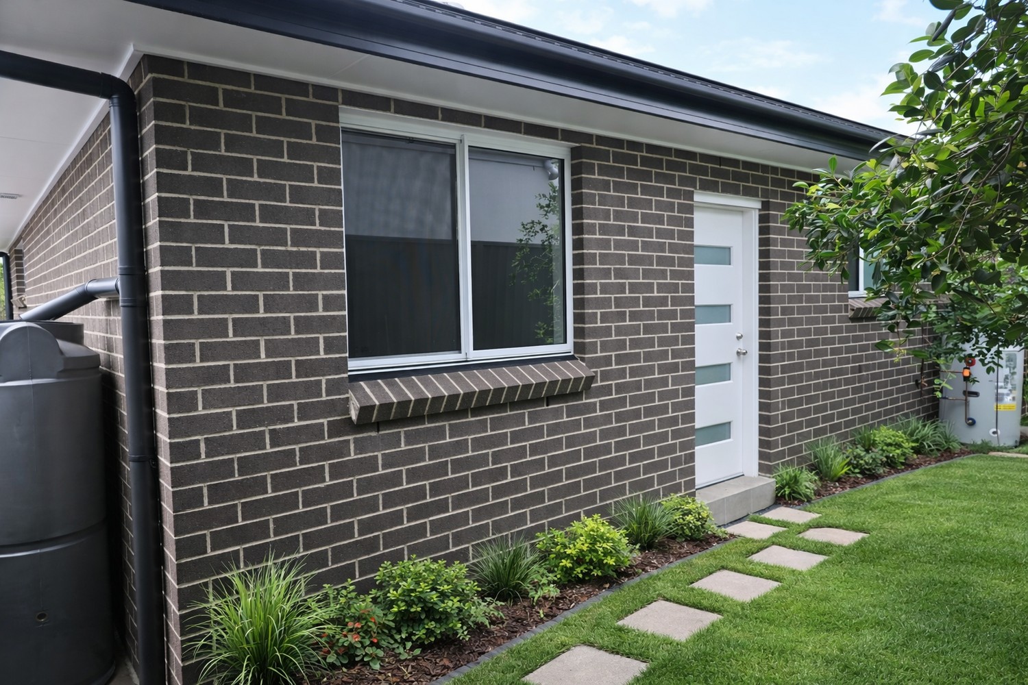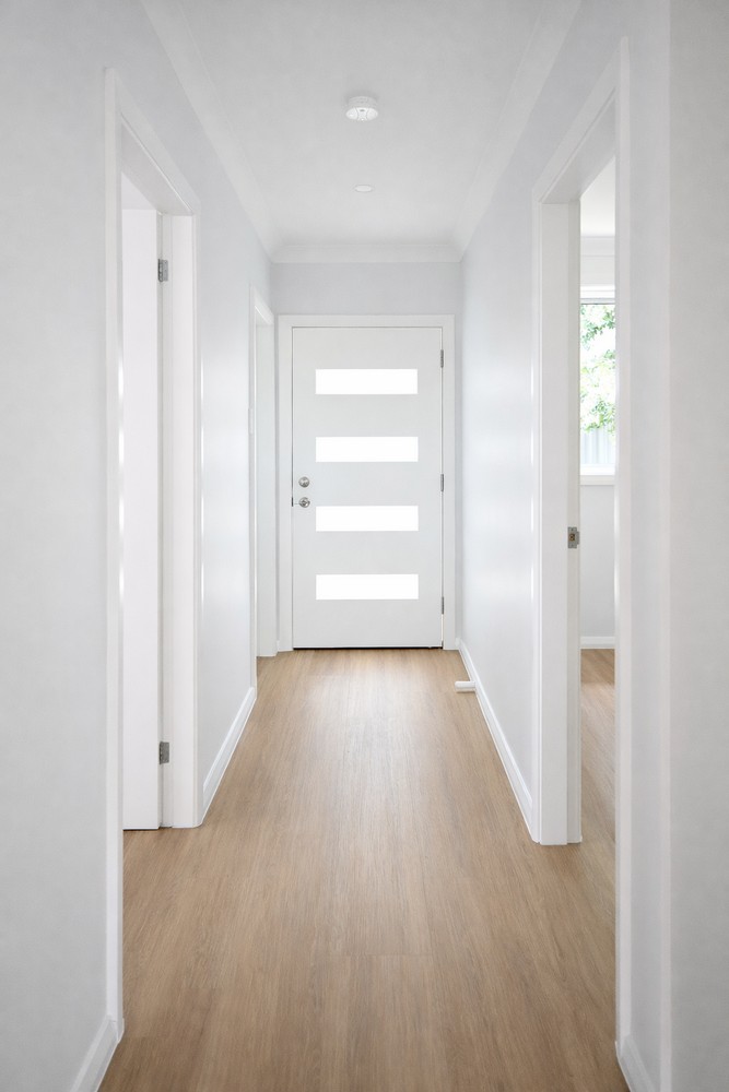 This modern granny flat on Panorama Road, Kingsgrove, showcases a clean, contemporary design with a strong focus on light, space, and everyday functionality. The exterior features a sleek brick façade complemented by neat landscaping, creating a polished street presence. Inside, the home offers a bright open-plan living and kitchen area enhanced by large windows, neutral tones, and quality timber-look flooring.