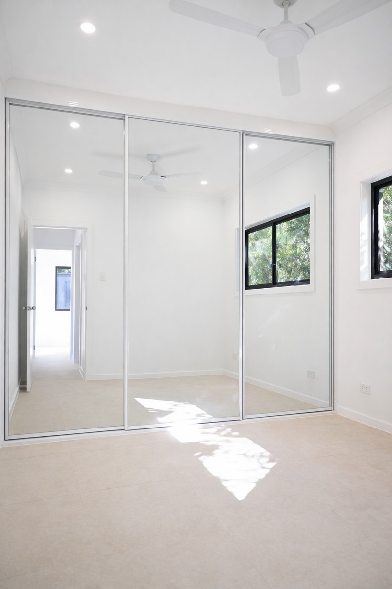- Mirrored built-in wardrobes (3-panel + 2-panel)
